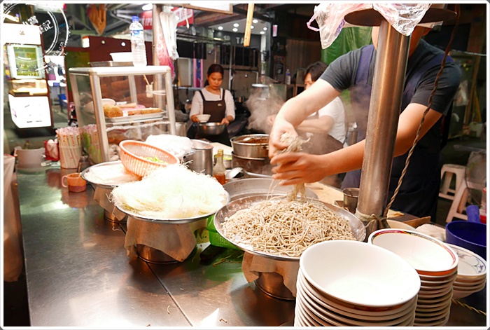| 深夜總是一個年輕小夥子在顧攤,俐落地將麵條迅速抓好分量下鍋! |