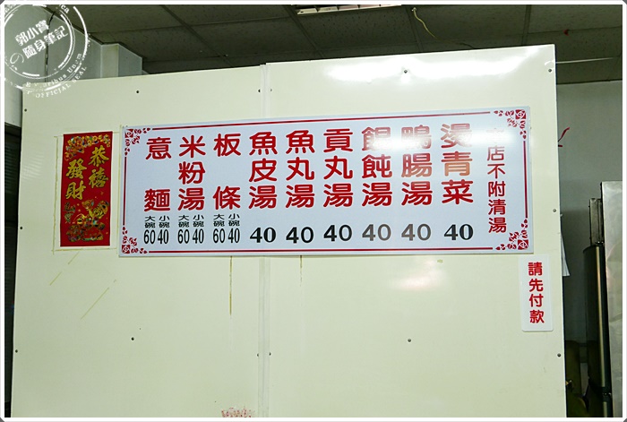 | 價目表~~其實也就是這樣簡單的麵食類、小菜、還有湯品。但是就是這樣的單純品項才顯得出古早味店家總是專注在自家製產品上。 |