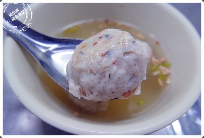 | 南明的魚丸湯就真的超特別,完全不是我們一般想像的魚丸,一碗裡面有三大顆特製魚丸,顏色還很繽紛很像少女的心情XDDD一顆魚丸真的很大顆,吃起來超級飽的,所以寶妹的飯食都不會點大碗的,魚丸不只外表特別,吃起來也有很特別的味道,完全沒有魚的腥味~~ |