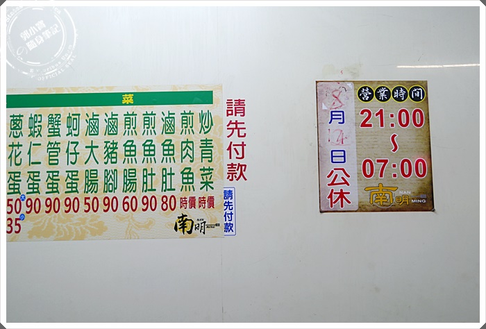 公休日不一定唷~~~營業都是開到早上七點。但真的很好玩對面南豐滷肉飯休假的時候,南明滷肉飯是幾乎部會休假的XDDD