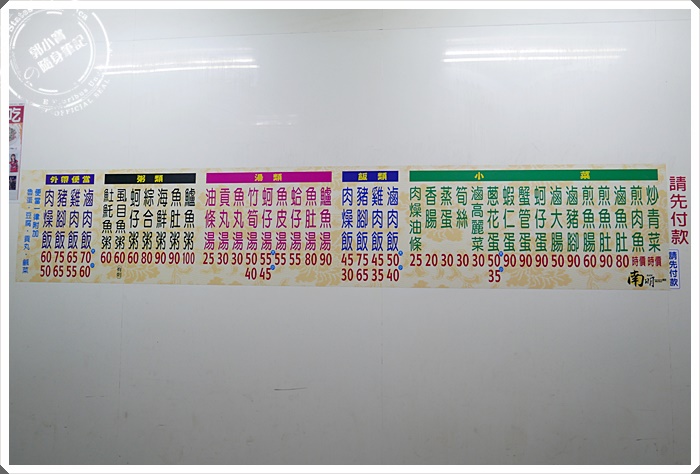 | 牆上價目表~除了飯食之外,粥品跟湯品小菜都非常熱賣 |