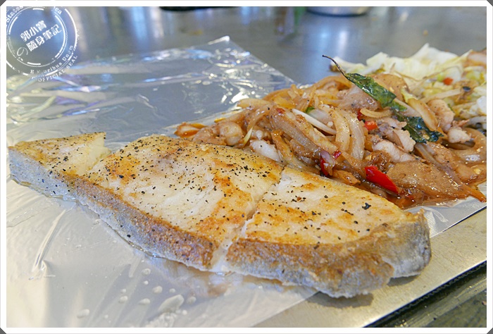 | 再來就是寶妹自己點的雞排了,在煎台上一直發出滋滋的聲音,口水都要流出來了 |