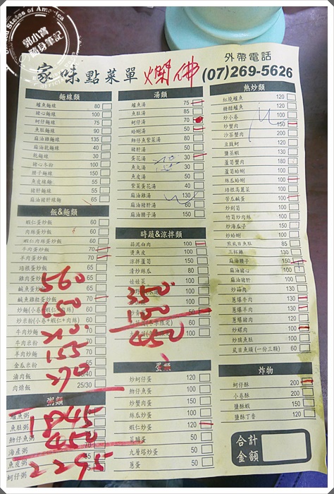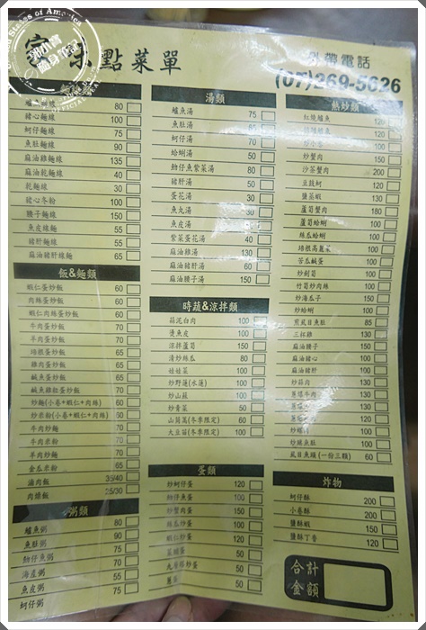 | 落落長的點菜單,寶妹一行人大約有12位,半夜三點浩浩蕩蕩地衝進來用餐,除了朋友們想要繼續小酌以外,目的是想要點一些小菜下酒,~~所以今天寶妹不是要介紹他的鱸魚麵線啦 |
