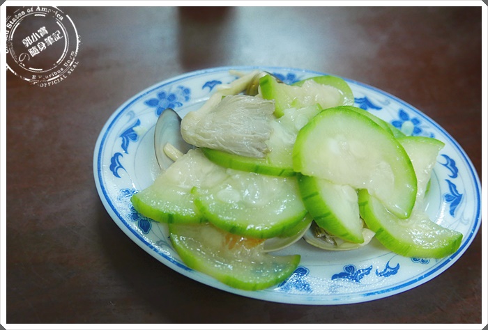 | 絲瓜蛤蠣~竟然不會煮的爛爛的,可見火侯下的好,賣相十足,將蛤蠣鋪在底下就能夠吸收絲瓜的甜味,厲害厲害! |