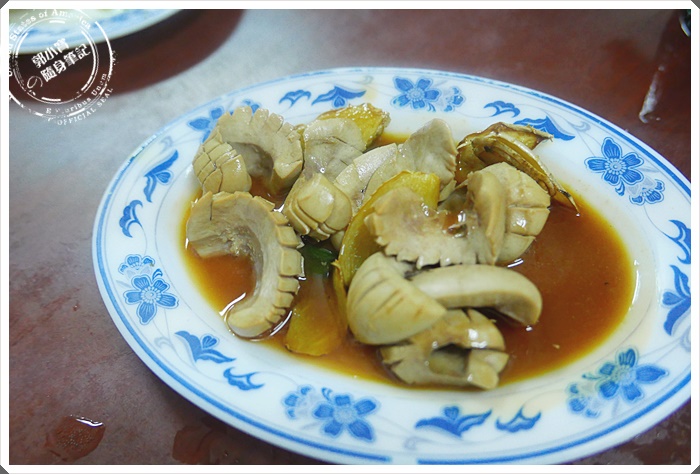| 麻油腰子,分量好少都鋪不滿><,但是他的麻油很順口又香,盤子一端上來就聞到陣陣的麻油香氣~看來麻油腰子應該要點大盤的,根本不夠我們這群蝗蟲分啦 |