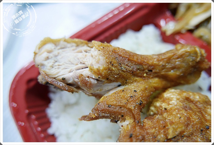 | 肉的份量其實不算多,但是那外皮真的很棒,寶妹不愛裹粉的炸雞腿,因為那樣還是會吸附很多的油,高溫下連皮一起炸出來裡面的肉質保留了水份跟湯汁,不會乾柴....光是在加上納胡椒粉的味道連皮帶肉一口咬下,旁邊不管坐誰都會羨慕死你~~ |