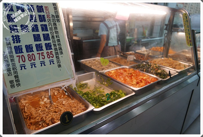 | 這整條文橫路的便當店特色就是都會有編好號碼的菜色給你選三樣,上班族便當的菜色也不少,寶妹數了數也提供到14樣菜可以挑選~~ |