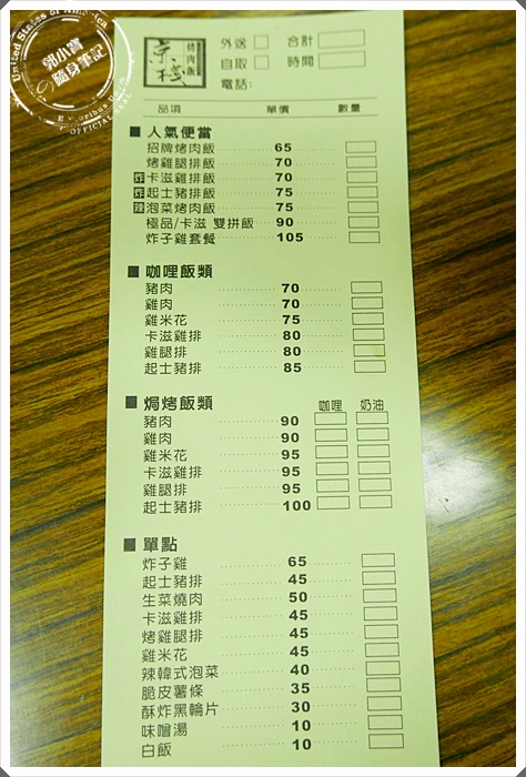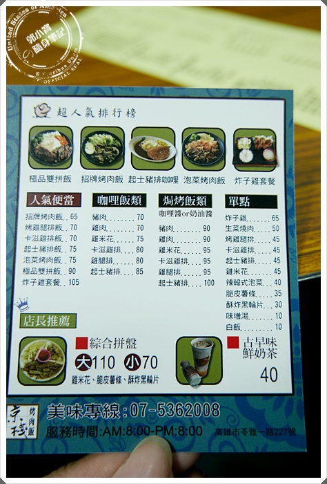 | 外帶用的DM卡,京棧烤肉飯他們家的菜單種類真的好多種= = |