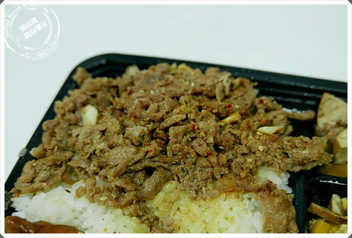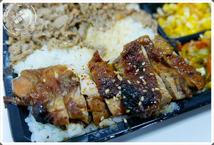 | 烤肉的份量給的很多,剛開始吃的時候有些油,但其實一定要配上飯來吃,不要單獨吃烤肉,配上飯之後整個便當的重點就大大提升,本身烤肉的口味就很濃厚了~~非常適合重口味的朋友們來吃! |