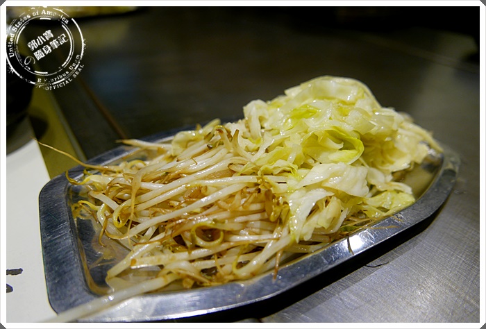 | 一樣會給上兩種蔬菜,高麗菜以及豆芽菜是台灣鐵板燒之中最常看到的時蔬,分量也滿剛好的並不會太少,也可以依照自己的喜好請師傅加辣或是黑胡椒 |