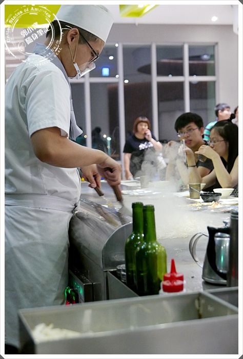 | 正餐時間吧檯上坐滿了用餐的客人,實在是拍不到師傅的煎台功力,只好來個側面照幫他帥帥一下XDDD |