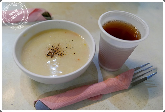 | 湯和飲料內用的話則是無限量供應的,外帶則是附一份濃湯,其他的則是要加價^^佳家牛排的餐檯好乾淨,晚餐七點多店內坐滿了用餐的客人,外頭還排了許多外帶的學生,看來在地美食真不是蓋的唷 |