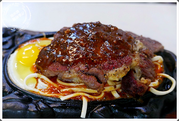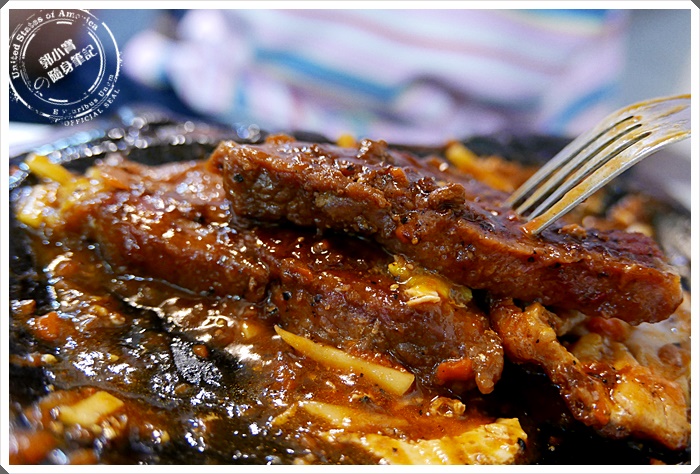 | 好不容易努力吃掉多到爆的鐵板麵,厚片牛排的魅力完全展現出來,份量超多,口感紮實又特別,就是朋友的最愛阿!, |