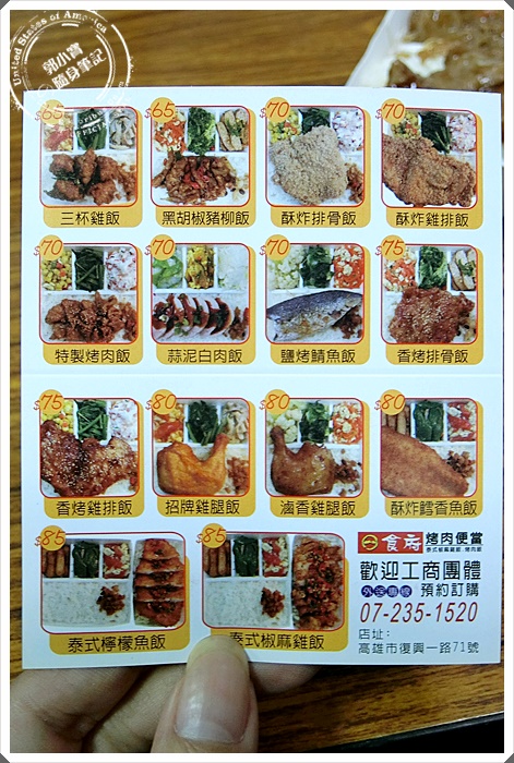 | 14種便當在名片上還有照片參考@@這樣看起來好美味,對於趕晚班的寶妹來說,看到照片整個上班路上都飢腸轆轆的,不管下次一定要吃泰式檸檬魚,這種類倒是很少見到唷 |