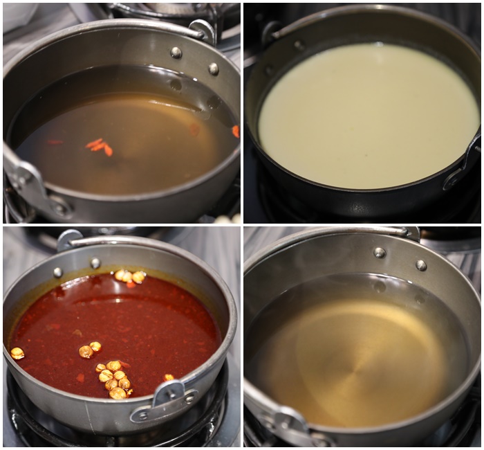 湯頭有四種口味,剛好我們四個人一人一鍋,分別有麻辣鍋、牛奶鍋、原味昆布鍋跟藥膳鍋,最後反而是我吃最有少女心的牛奶鍋,因為牛奶鍋是他們家的招牌,雖然最後我們大家都是輪著亂吃一通,老實說它們除了原味昆布鍋以外,其他三種鍋都很有特色,牛奶鍋除了濃郁的奶香以外,還有起司的香氣也滿重的。