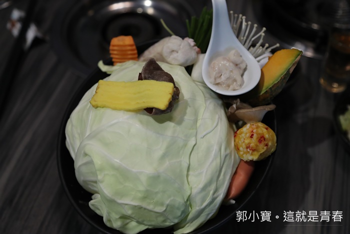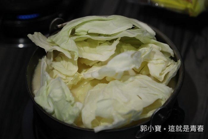 | 看看這高麗菜的量真的真的很誇張,還不是假的一大片,全部都是滿滿的高麗菜,放到鍋裡面幾乎整個都滿出來了,最近因為菜價太貴的關係,好多小火鍋的菜盤都偷偷的縮水了,其實因為菜價的關係縮小我也能理解,但是這一家熊飽鍋物真的也太大心了! |