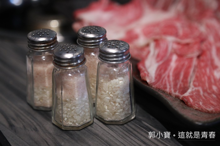 | 熊飽鍋物還很特別的送上來了玫瑰鹽的調味品,因為對自家的肉品很有信心,所以就算不沾醬灑點鹽就很好吃了。 |