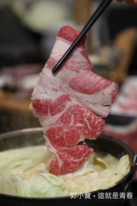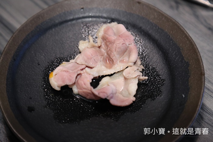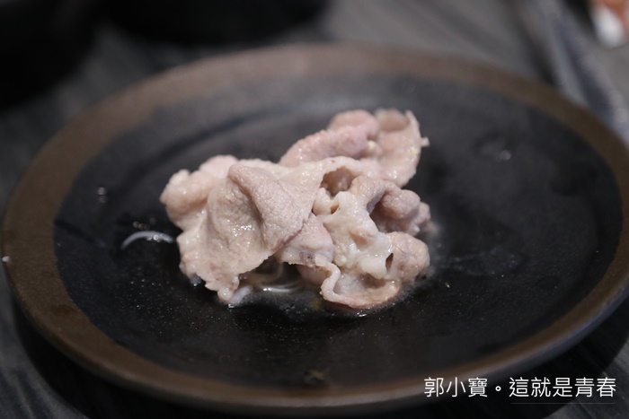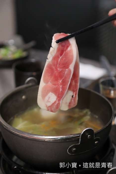 | 下鍋燙到粉紅色就可以撈起來了,入口淡淡的奶香味跟伊比利豬本身的甜味搭配的簡直天衣無縫,咀嚼中那滋味真的太迷人了,瞬間就被我們一群人搶食光了,可以用那麼划算的價錢品嘗伊比利豬真的太幸福了。 |