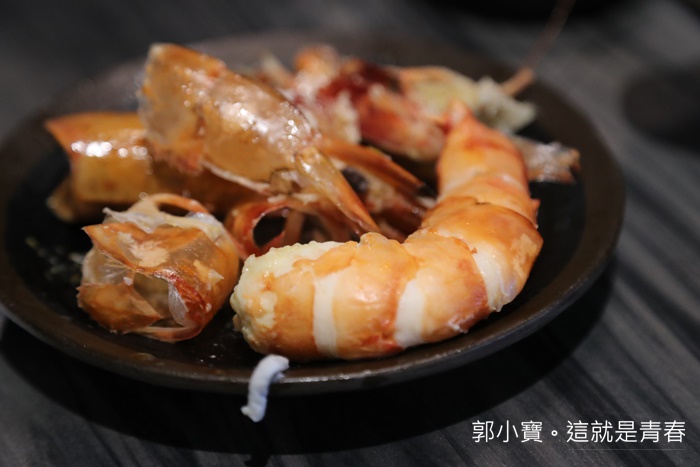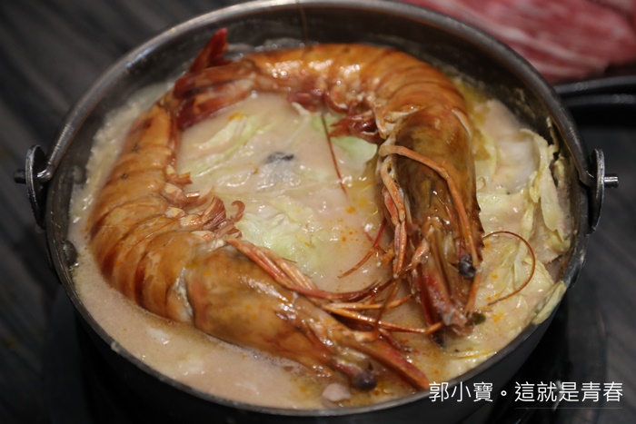 | 幾乎連盤子都快裝不下的大草蝦,值得稱讚的是他們家的海鮮是我吃過小火鍋裡面提供的海鮮應該是最新鮮的了,比較吃香的應該是鄰近宜蘭的海港還滿多的,工作人員說很多海鮮都是當日配送的,也就是現流的意思啦XD |