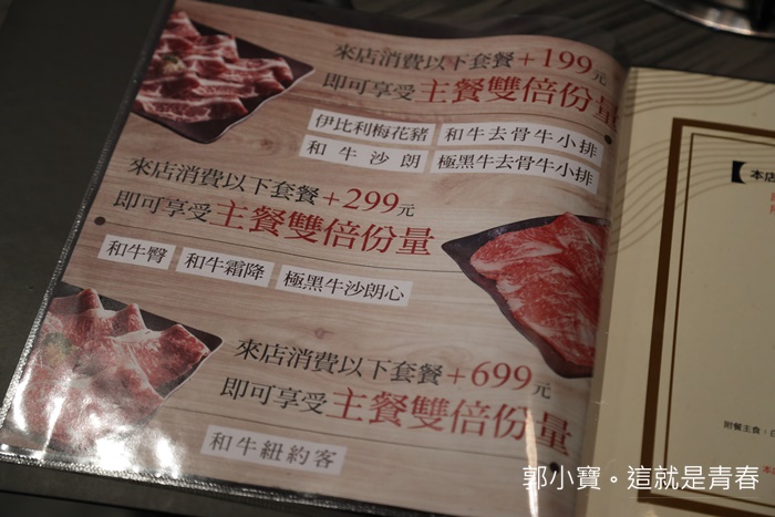 | 如果大食量的朋友可以選他們現在的活動,套餐再加59元,主餐的肉品就是雙倍的份量,其實還滿划算的,除了櫻桃鴨胸肉以外,其他的肉品也都有這樣的活動,瞬間單點的肉品就將近打到骨折了,大食量的朋友可以把握一下這主餐加量的活動。 |
