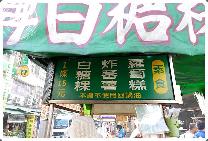 | 攤子上面標明了寫不使用回鍋油,仔細看看他的油鍋真的超淨的,油都是清的,阿姨不停的用夾子將白糖粿的本體擠壓,好讓白糖粿本身能夠更澎^^還有旁邊那一大疊的炸番薯實在是超級壯觀,後方還有一個大爐子是專門在炸番薯的,味道才不會混在一起。 |