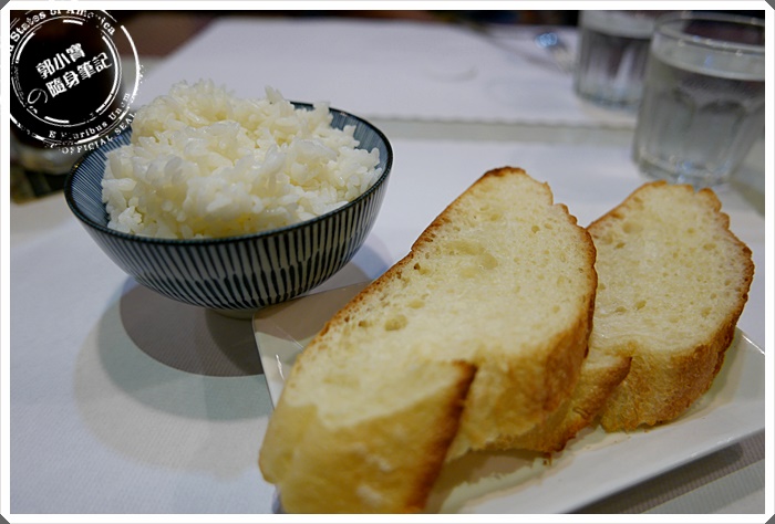 | 主食則是有白米飯還有法國麵包,漢堡排搭配米飯的吃法其實是比較屬於日式洋食風格的,漢堡排在日本人家庭中扮演著每家都會上桌的家常菜,配上一些高麗菜絲還有白飯就是一頓晚餐,這樣的吃法是小朋友們的最愛。而如果沒有非常餓的話,寶妹是比較建議點選麵包,因為密特先生的軟法烤起來相當的好吃~ |