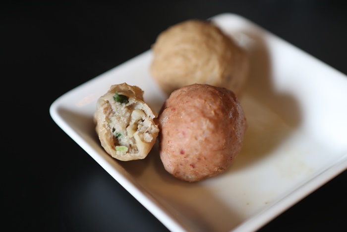 | 店員說他們家的火鍋店全部都是選用手工製作的火鍋料,品質都很好,大燕餃的部分真的還滿好吃的,一口咬下除了彈牙以外,還有裡面的蔬菜跟荸薺的感覺,因為吃到脆脆的口感,讓我一直以為是荸薺,口感相當豐富,手工貢丸的彈牙度也是十足啊!!!! |
