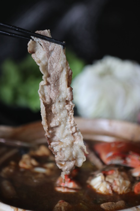 | 香草豬我本身就還滿喜歡的,也算是台灣比較熱門的品牌豬,本身就沒有甚麼豬腥味的香草豬帶有特別芬芳,入鍋煮後的口感非常好,重點是這些肉品入海鮮羊肉爐其實並沒有搶走太多本身肉品的味道,好吃! |