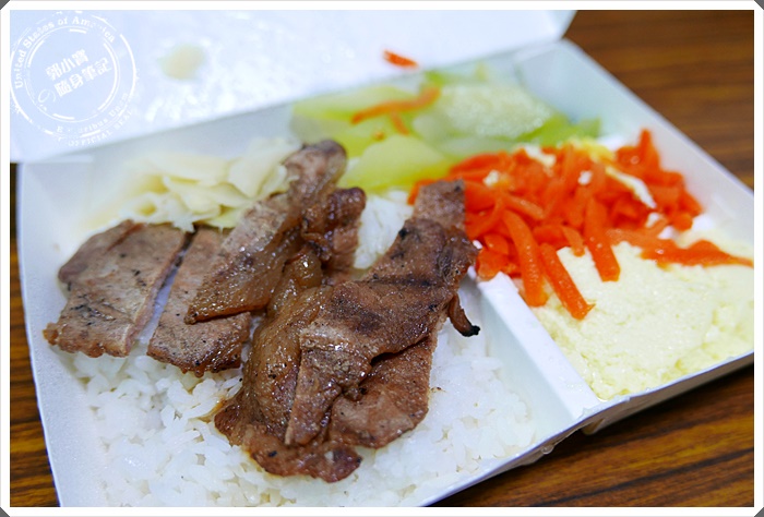| 店家很細心是我這一次購買比較欣賞的部分,會特別地問你要不要攪鹹?還會在另外問上要不要放薑片,服務上感覺很不錯。不過店家雖然是在販售燒肉便當,在現場購買的時候卻不像其他專賣小吃店有著極香的烤肉味,只能說有些些可惜人家很想要聞烤肉香^^ |