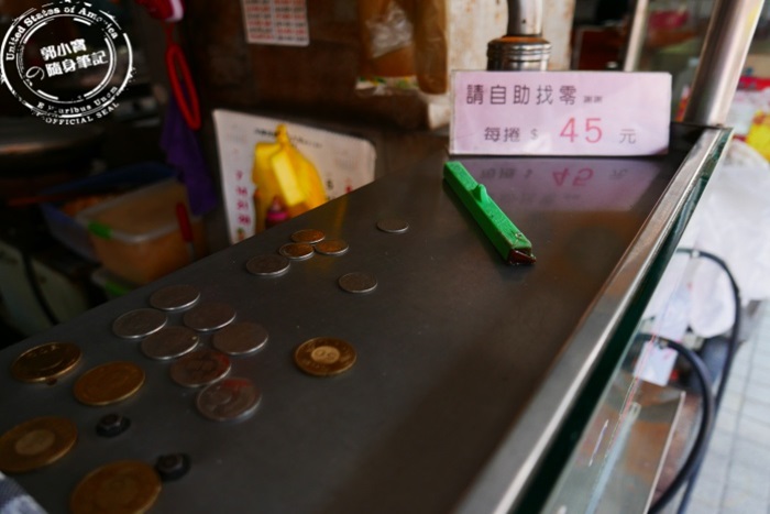 | 基於衛生,結帳採自助式,顧客要自己找零,每卷$45檯面上都有零錢,除非拿仟元大鈔不然基本上都自己來。 |
