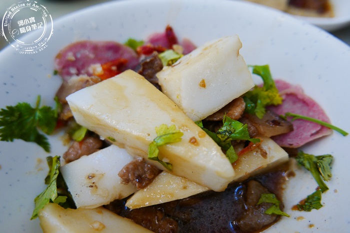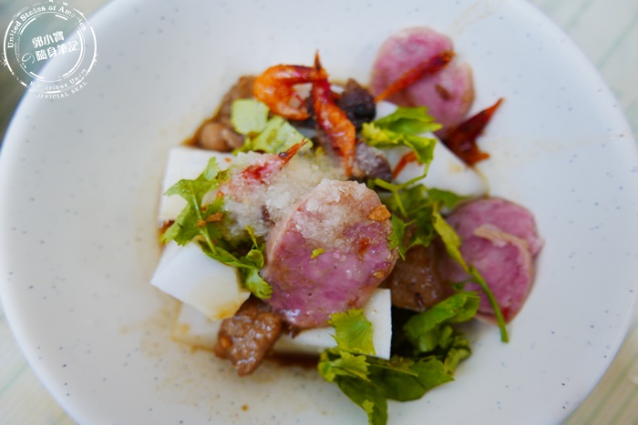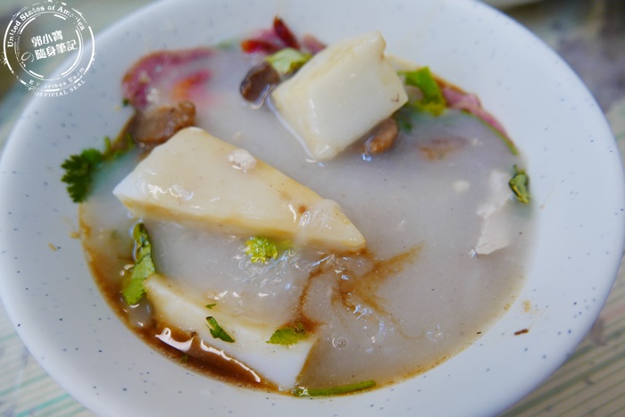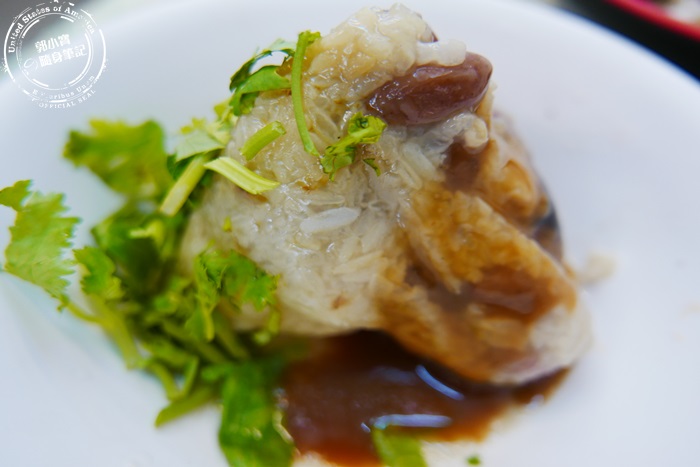| 肉粿配料有香腸、豬肉、蝦米和肉燥,主角手工製做的肉粿大塊滿足口感微Q綿密吃的到米香。 |