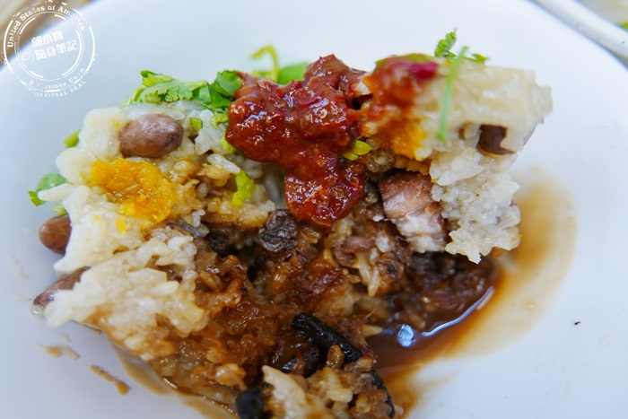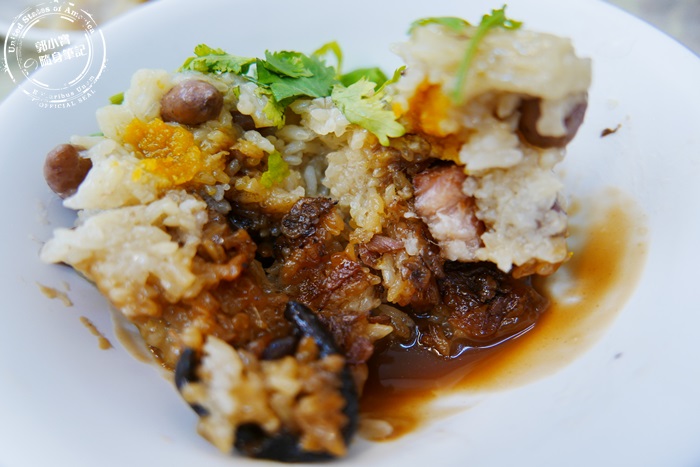 | 他們家的肉粽不是那種白白沒有味道,裡頭配料豐富就是一般很傳統的肉粽,加點醬油膏鹹香中帶點甜味,搭配軟Q的糯米還有配料口感的層次,傳統好味道就是如此。 |