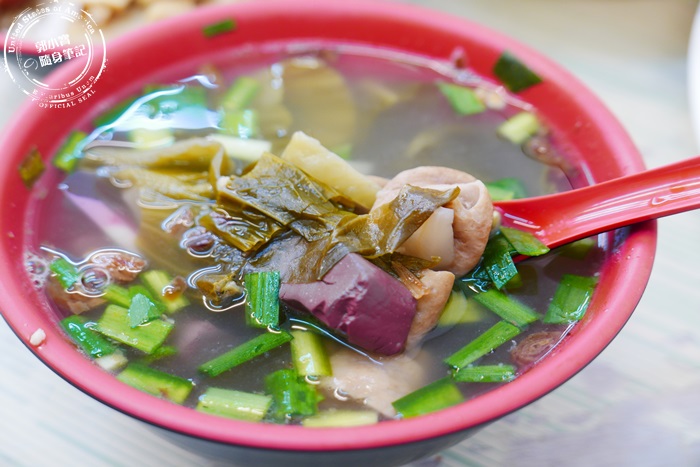 | 滿滿的一大碗大腸豬血湯料超多,這樣才$40好超值啊,裡頭的豬血大塊厚實Q脆有彈性,大腸也是很大塊且處理的很乾淨,不會嚼不爛,湯頭甘甜順口整碗料好實在。 |