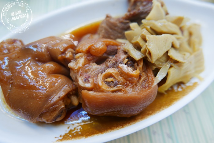 這盤滷豬腳真的滷的很夠味不死鹹,那表皮呈現的光澤,令人胃口大開,雖然滷的軟嫩但表皮仍保有彈性,肥瘦比例剛好,豬蹄圈的部分吃得到皮的軟Q,肥瘦肉帶點筋,骨頭內有骨髓,旁邊的筍干爽口解膩,加分不少。 |