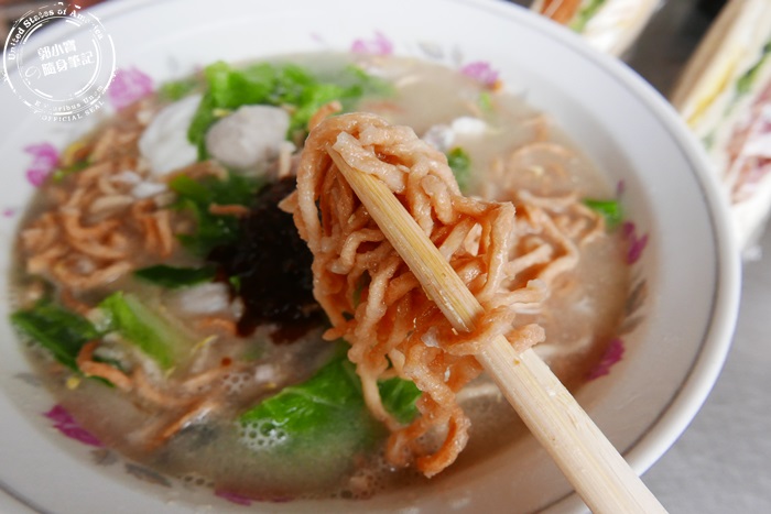 | 意麵吸滿滿的湯汁,有Q度又濕潤超夠味的,因為配料跟雞絲麵一樣就不多做解釋。 |