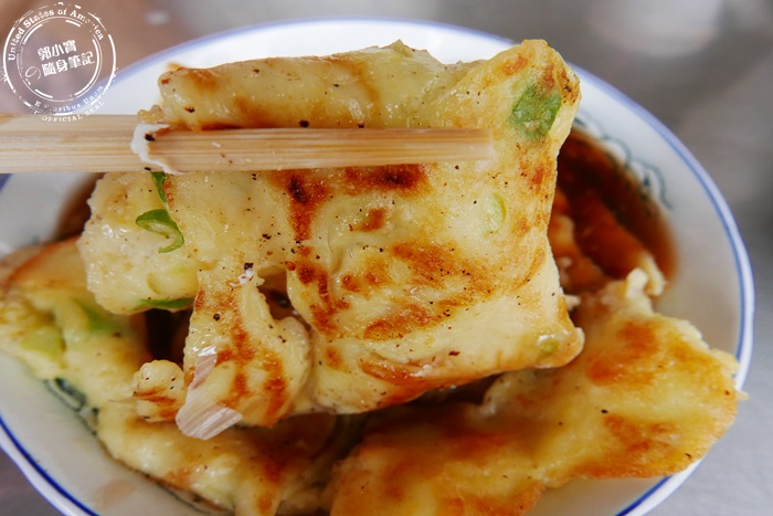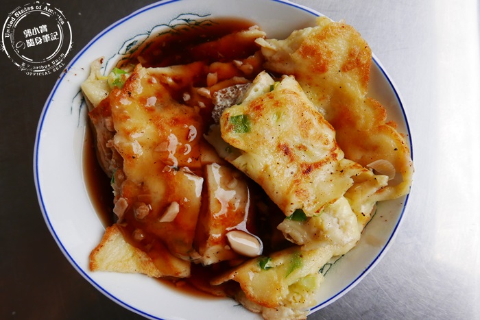 | 他們家的蛋餅雖然是用傳統麵糊製成的,可是老闆把麵糊跟蛋混在一起,不是分開煎的,所以整個蛋餅看得出來麵皮帶點黃煎的酥酥香香,吃的到麵香也吃的到蛋香,裡頭還有大量的蔥花增添香氣,外層淋的醬油也是店家手工調製的蒜蓉醬油膏,不會太鹹還多了蒜頭香氣,整個超好吃份量又多。 |