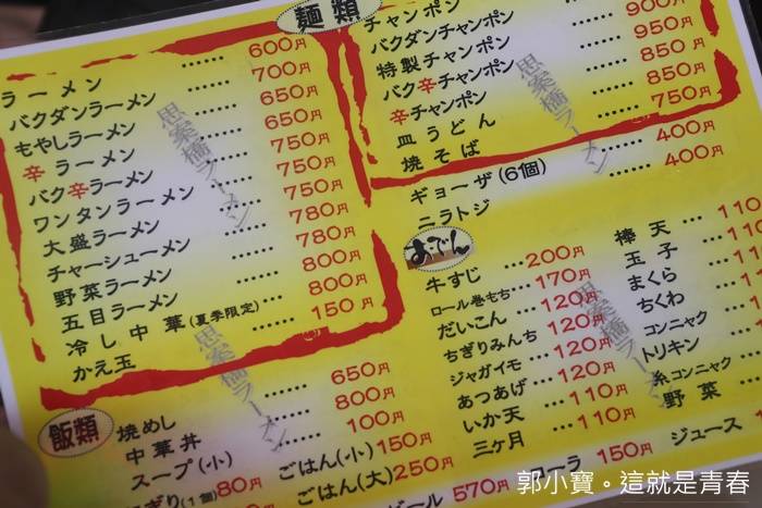 | 菜單上面除了麵食的選擇以外還有剛剛那一鍋滷味的各種價格,看起來都沒有特別昂貴,唯一一般日本麵食館的價位。 |