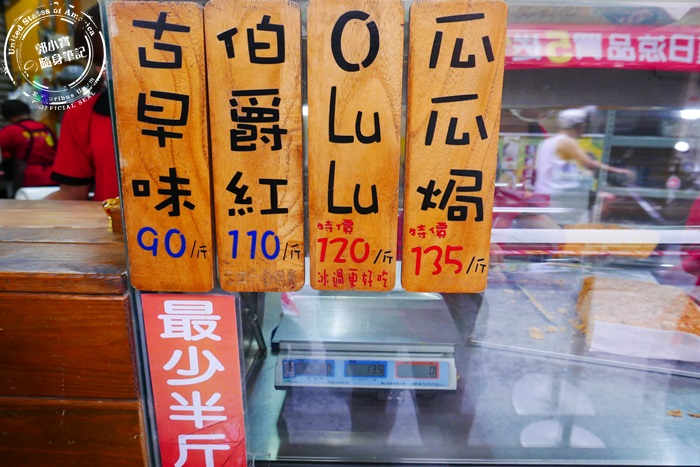 | 品項只有四種,古早原味、伯爵紅、O LU LU、瓜瓜焗,只有四樣就賣的很厲害了,最少要買半斤喔! |