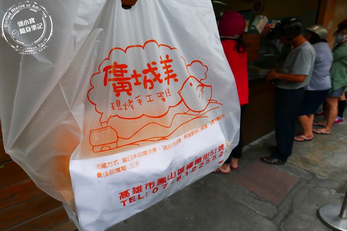| 排了一會兒,終於買好了,提袋很可愛,店家也有提供紙盒,若要送禮可以加價換紙盒比較美觀喔!(後面依舊一排人) |