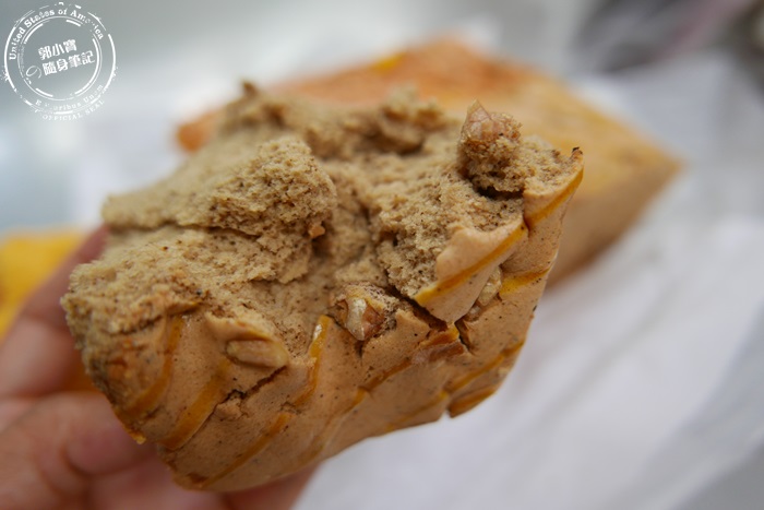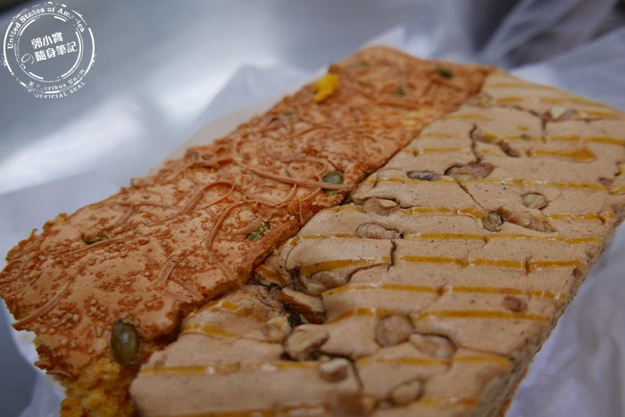 | 噢北編兩種口味都買半斤,「瓜瓜焗」跟「伯爵紅」,黃色的瓜瓜焗表層撒滿乳酪絲、南瓜籽,奶茶色的伯爵紅上頭灑滿了堅果,不管是哪一樣看起來都好可口。 |