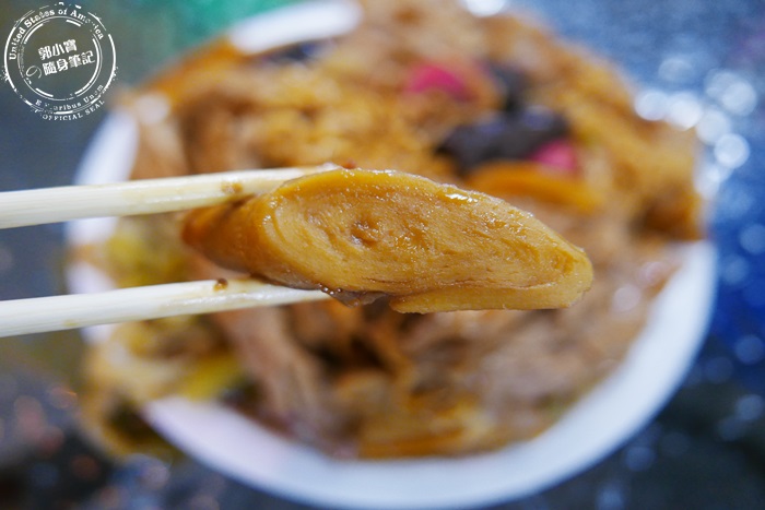 | 麵腸,這個素食者也可以吃的,口感QQ軟軟的帶點麵香,本身有點微酸,吸收了滷汁的鹹香,變得很夠味很好吃。 |