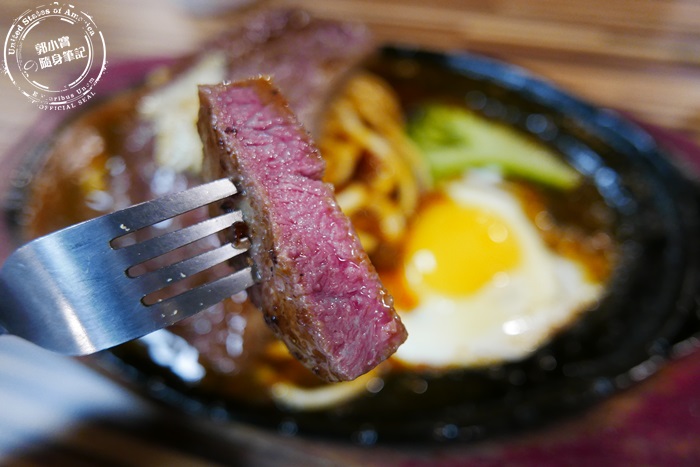 | 8盎司的厚切美國牛排,這份量真的頗大的,噢北編點7分熟的熟度,熟度算是蠻剛好的,可是如果敢吃生一點的朋友可以差不多叫五分熟,口感上會更嫩,牛排厚度約一公分多左右,裡頭粉嫩的顏色看了口水直流,單吃原味或簡單灑點玫瑰鹽就很鮮美,只是筋有點多要咬比較久。 |