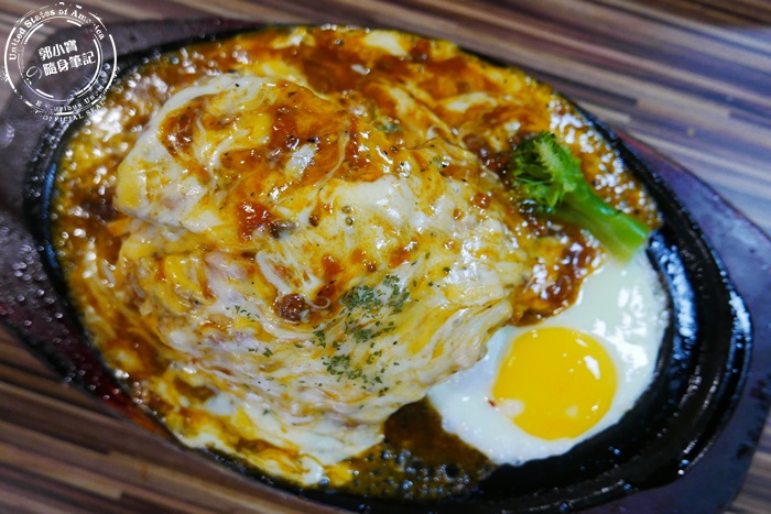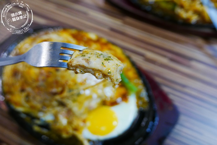 | 份量超大的岩漿起士豬排,上頭鋪滿滿的起司,豬排也是有厚度的,只是沒有厚切牛排那樣厚,口感挺紮實的有咬勁,不會過硬過柴,配上起司口感變的濃郁滑嫩多了層次感,好像什麼東西只要搭上起司,都會變得超好吃。 |