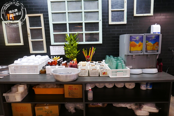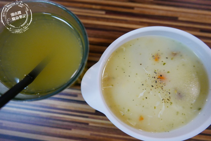 | 店內中間區有放置飲料跟濃湯自取處,餐具醬料也都是自助式的,所以飲料跟濃湯都是喝到飽,是不是很超值? |