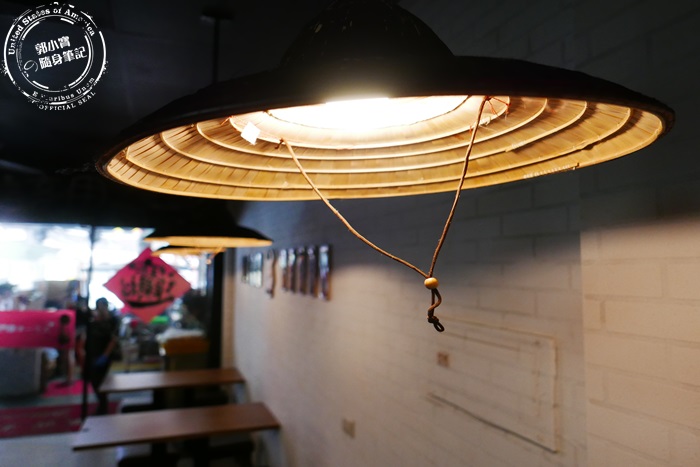 | 店家的小巧思,發現店內的燈,燈罩是斗笠來著,太可愛了吧!超有創意的,門口大大的春聯充滿濃濃的台式風味。 |