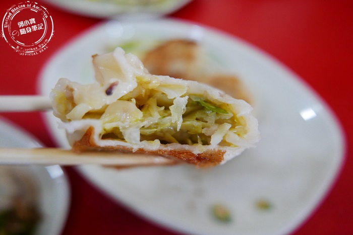 | 這煎餃其實不小顆,夾起來蠻有份量的,一口咬下表皮不會太厚,非常剛好表皮Q彈麵香十足,煎的微焦香更好吃,裡頭內線有大量的高麗菜,超鮮甜清脆,整個營養滿分又超容易飽足。 |