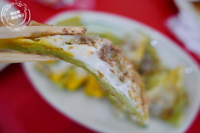 | 古早味蛋餅麵糊的蛋餅皮一定要這麼有厚度,才會口口滿足,這種古早味麵糊就是要軟軟QQ有彈性,再配上微焦的蛋香,口齒留香厚實又滿足,20塊這樣一份早餐就很飽足了。 |