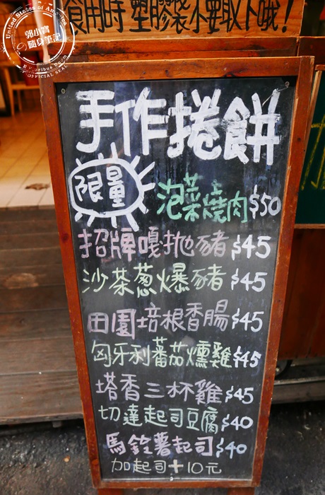 | 菜單都寫在攤位前的立牌上,口味這幾種每一種都看起來好好吃,而且價位都是銅板價,難怪深受學生族群的喜愛,而且用黑板手寫的菜單特別有味道,一種拉回學生時期的感覺。 |