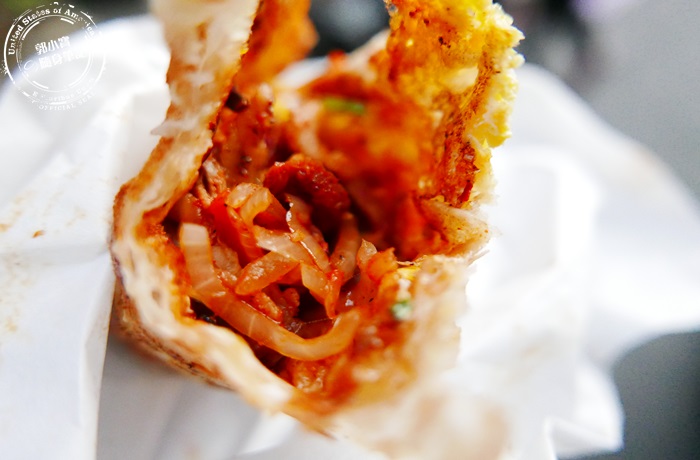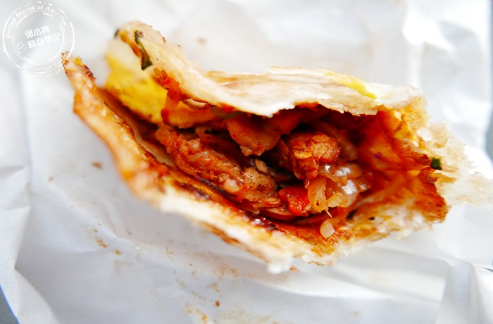 | 看到是限量點就對了,泡菜燒肉這個真的是很經典的口味,兩種搭配在一起毫無違和感,而且泡菜本身就非常百搭,他們家的捲餅皮有一點像蔥油餅的感覺,加蛋混合後再包上內餡,餅皮吃起來很Q很香,煎的酥酥脆脆有嚼勁,配上煎的焦脆的蛋香超搭的,內餡有泡菜香辣跟洋蔥炒過的香甜,燒肉醃的入味,不柴很好咬,泡菜的酸整個開胃,口感層次超棒的,整體搭配起來非常好吃又夠味不膩口。 |