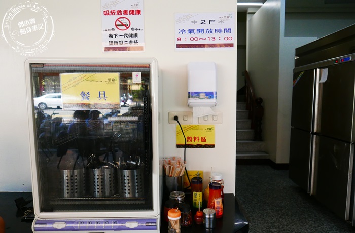 | 他們家是算半自助式的,餐具醬料的部分都需自取,而餐具擺放的空間都是在殺菌的烘碗機裡頭,非常整齊乾淨而且很衛生,醬料也是應有盡有,重點1、2樓都有餐具醬料區,非常貼心。 |